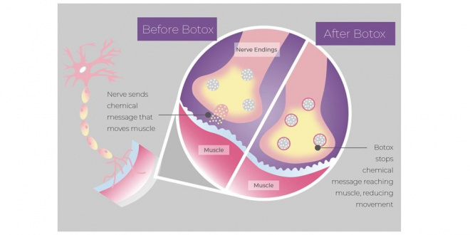 Da bi se skrčila katerakoli mišica v telesu, mora živec (ki določeno mišico oživčuje) v živčno-mišični stik sprostiti kemijsko molekulo imenovano acetilholin. Ta se nato veže na receptorje na mišični celici in povzroči kontrakcijo ali skrčenje mišice. Botulinski toksin deluje tako, da prepreči sproščanje acetilholina, s čimer prepreči kontrakcijo mišice. Prav ta mehanizem je postavil temelje za razvoj toksina kot terapevtskega orodja.